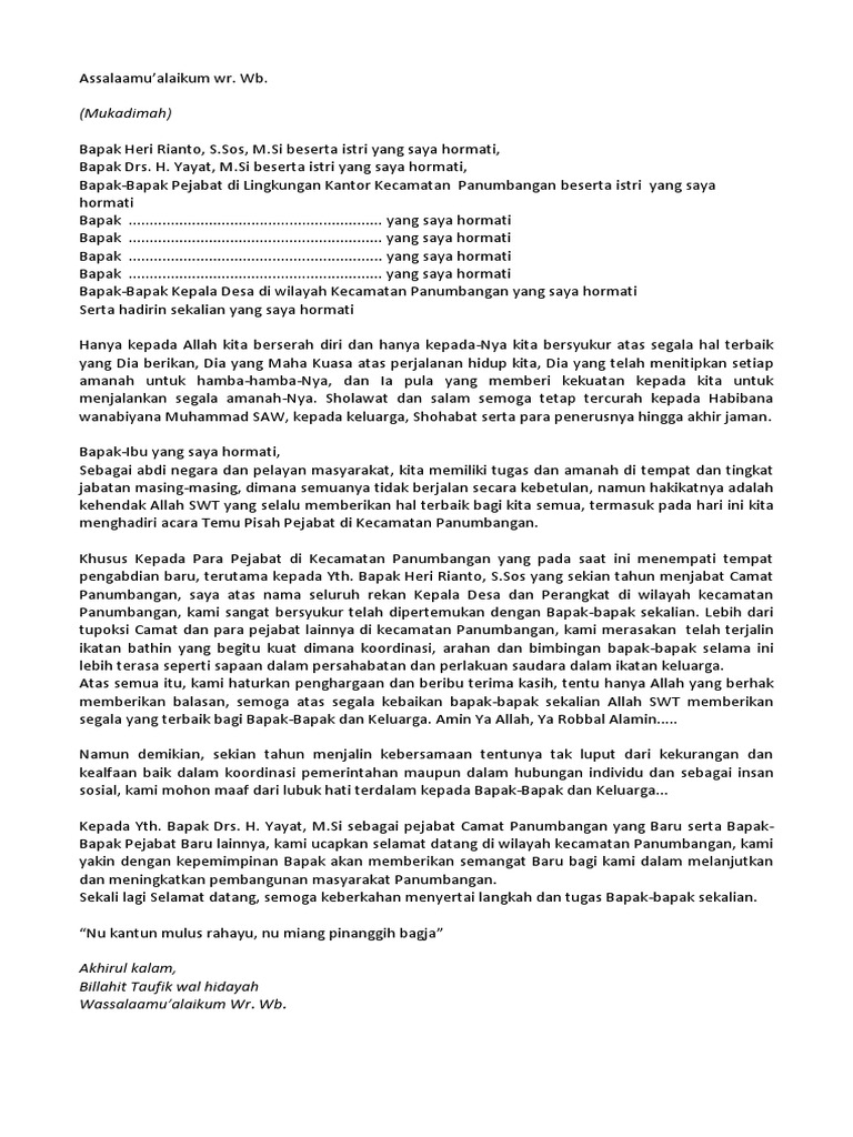 Pisah sambut dan serah terima jabatan kepala desa bathin betuah. Beliau menyampaikan bahwa mulai kemarin beliau secara resmi dilantik bupati purworejo . Yang saya muliakan para mahasiswa kkn. Pisah sambut dan serah terima jabatan kepala desa bathin betuah. Yang kami hormati, perangkat desa hargantoro. Kami berharap semoga bapak siswanto hadi dapat meneruskan prestasinya di sekolah yang baru. Contoh contoh pidato pisah sambut kepala desa. Yang kami hormati kepala puskesmas tirtomoyo i atau yang mewakili. Diawali oleh sambutan kepala desa pandean bpk. Pidato kepala desa baru yang menerima jabatan. Selanjutnya sambutan perkenalan kades oleh drs. Acara sertijab serah terima jabatan acara. Yang saya banggakan ketua karang taruna beserta .
